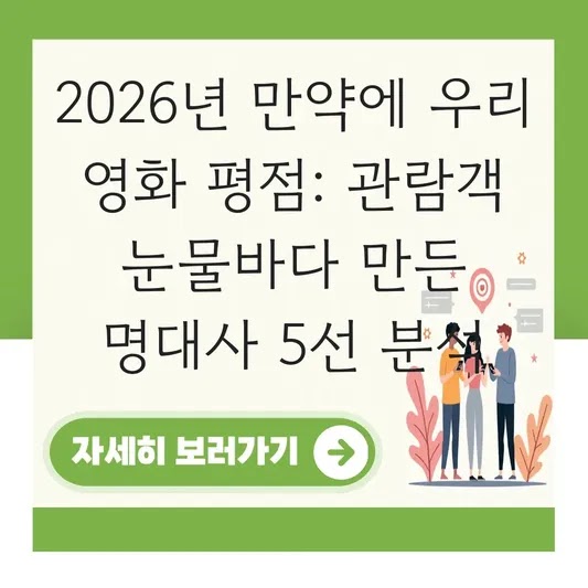 현직 컨설턴트로서 저는 어떤 프로젝트를 시작하든 핵심 요약을 먼저 살펴봅니다. <만약에 우리> 영화는 2026년 1월 18일 롯데시네마에서 개봉하여 관람객들 사이에서 입소문을 탔습니다. 특히 이별을 경험해 본 사람들에게 큰 공감을 얻으며 '눈물바다'를 만들었다는 평이 지배적입니다. 이 영화의 핵심 데이터는 다음과 같습니다.