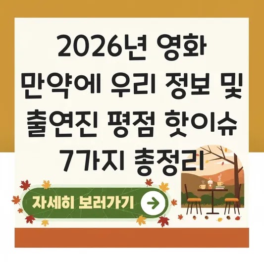 최근 개봉한 영화 <만약에 우리>는 2026년 새해 극장가에서 가장 뜨거운 화제가 되고 있습니다. 이 작품에 대한 정보가 궁금해서 검색하는 분들을 위해, 불필요한 광고나 과장 없이 핵심 정보와 실시간 관람평 데이터를 분석해 드리려 합니다. 이 글은 여러분의 시간을 절약하고 최적의 영화 선택을 돕는 '프로젝트 보고서'라고 생각하셔도 좋습니다.